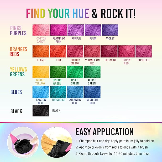 - Easy To Use & Apply Hair Tint: Hair color made easy with Punky! Just apply the color evenly from hair roots to ends with a tinting brush, comb through and leave on approximately 15-30 minutes and then rinse out. Easy peasy! No need for expensive hair salon visits!
