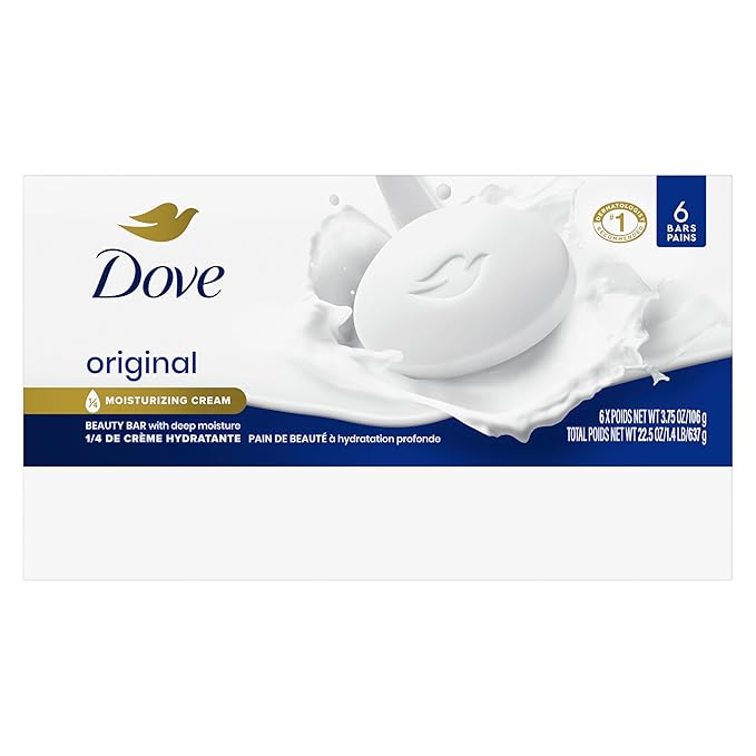 Dove Beauty Bar Soap Original, 6 Bars for Soft, Smooth Skin, with 1/4 Moisturizing Cream 3.75 oz