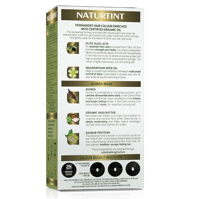 Naturtint 2N Brown Black Permanent Hair Color (Pack of 1), Ammonia Free, Vegan, Cruelty Free, up to 100% Gray Coverage, Long Lasting Results (Packaging may vary)