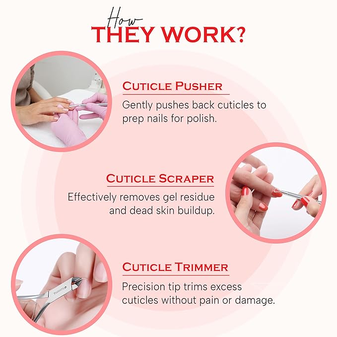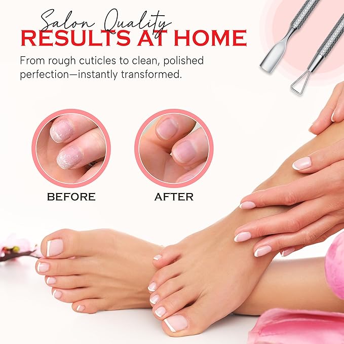 - โ Premium Stainless Steel Craftsmanship: Built with upgraded polished stainless steel, this professional 5-in-1 cuticle trimmer set includes a cuticle trimmer, cuticle pusher, cuticle cutters for nails, nail scraper and gel remover. Sharp, rust-resistant, and long-lastingโperfect manicure tools for fingernails, dead skin, and cuticle maintenance.
