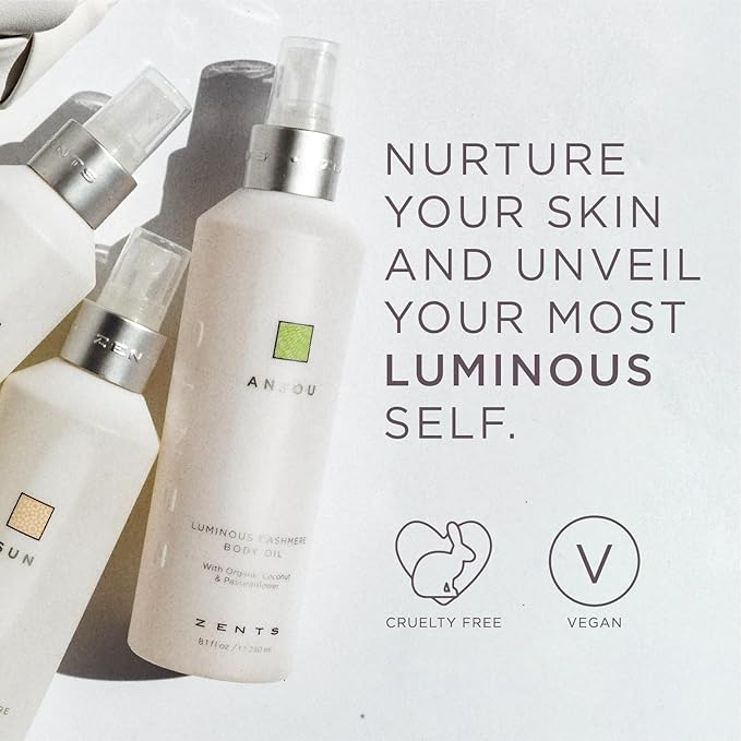 Zents Luminous Cashmere Body Oil (Petal Fragrance) | Moisturizing Body Oil with Vitamin E & Organic Coconut Oil | Softens & Smooths Skin | 8 fl oz