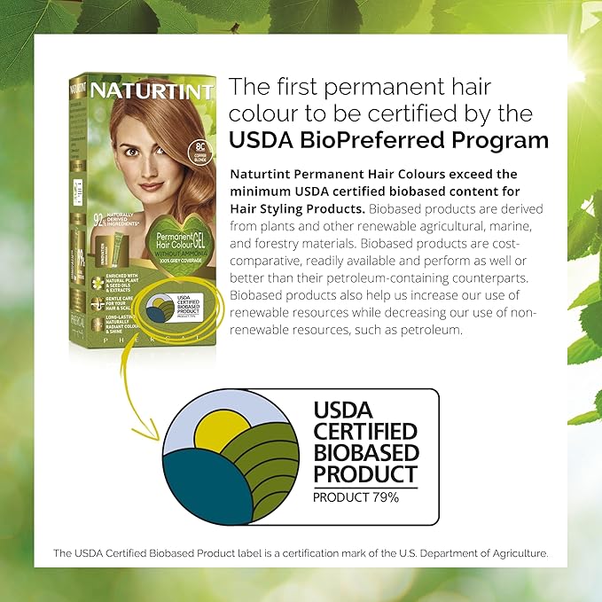 Naturtint 8C Copper Blonde Permanent Hair Color (Pack of 1), Ammonia Free, Vegan, Cruelty Free, up to 100% Gray Coverage, Long Lasting Results (Packaging may vary)