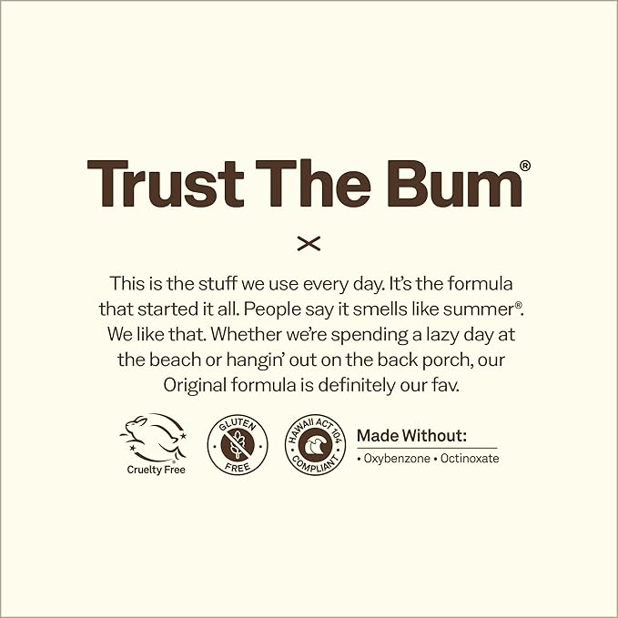- TRUST THE BUM. What does that mean? It means trust us, the ones who live on the beach and need products that work on the most intense days in the sun. The simple truth is, when you make products to protect the ones you love, you make 'em better.