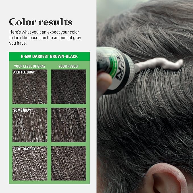 - Long-Lasting - Will not wash out; Lasts up to 8 weeks until the grey grows back; We know every man is different so our hair coloring product is here when those grey hairs begin to grow back