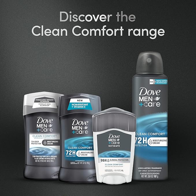 - CLEAN COMFORT RANGE: Try the full range of Dove Men+Care products, including antiperspirant deodorants, dry spray antiperspirant deodorants, face and body bars, and other hair and skin care products