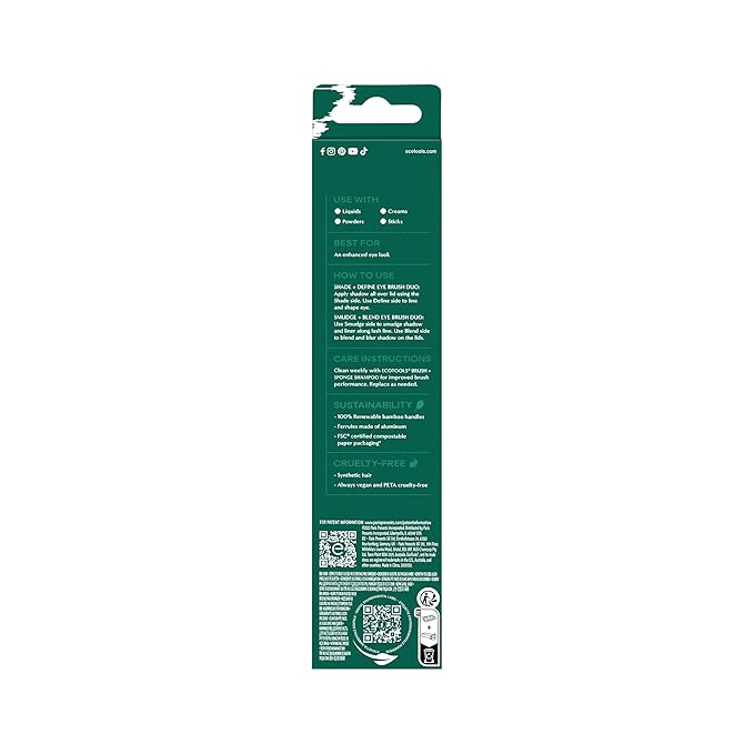 - EcoTools Enhancing Eye Makeup Brush Set creates the perfect eyeshadow look with: (1) Shade + Define Eye Brush Duo and (1) Smudge + Blend Eye Brush Duo – ideal for eye makeup application