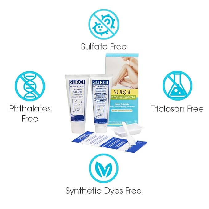 Surgi Invisi-Bleach Face & Body Hair Bleaching Cream 1.5 oz ( Pack of 2)