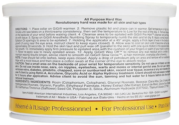 - SAY, HELLO TO HAIR-FREE SKIN FOR WEEKS!: Loved by waxing experts and regular users, GiGi All Purpose Honee Hard Wax will not only save you time in removing unwanted hair but also prolong the time of hair regrowth, giving you weeks of smoother, silkier and hair-free bare skin. 100% cruelty-free, never tested on animals and proudly made in the USA. From GiGi - the brand preferred by estheticians and hair waxing pros worldwide.