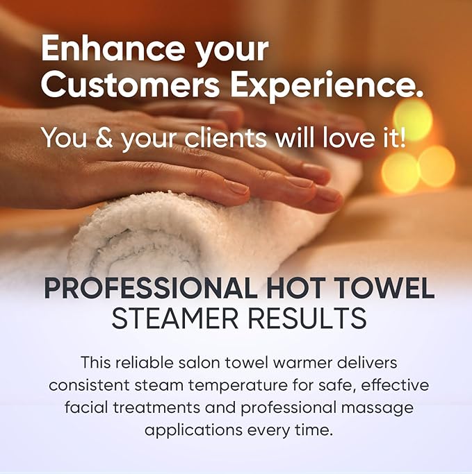 - MULTI-PURPOSE HOT TOWEL WARMER: Perfect towel steamer for spa facials, pedicures, manicures, barber hot shaves, and massage treatments. This professional esthetician towel warmer creates relaxing steamy towels for salon treatments or home spa experiences. Ideal spa equipment for beauty professionals and massage specialists seeking quality heated towel solutions.