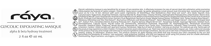 Raya Glycolic Exfoliating Masque with AHA and BHA (G-611) | Exfoliating Facial Treatment Mask for All Non-Sensitive Skin | Made with Alpha and Beta Hydroxy Acids