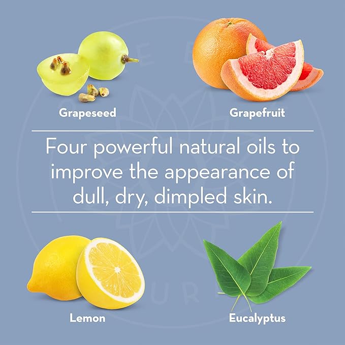 - ✅ Natural Ingredients – Formulated with oil extracts from grapeseed, eucalyptus, lemon, and grapefruit to naturally nourish, refresh, and support the appearance of smoother, cellulite-free skin