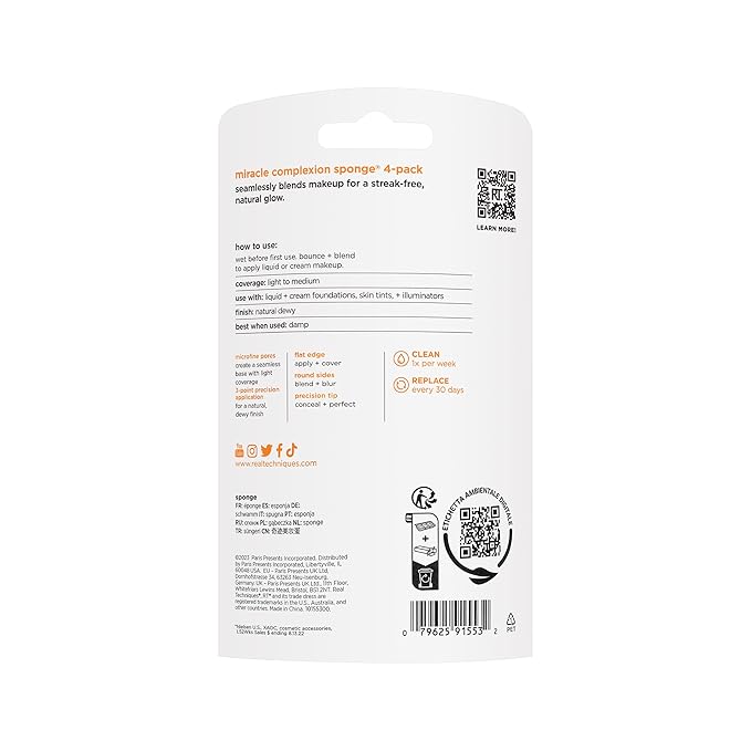 - Value Pack Makeup Sponge Set – Includes 4 Real Techniques Miracle Complexion Sponges designed for effortless, streak-free blending of liquid and cream makeup