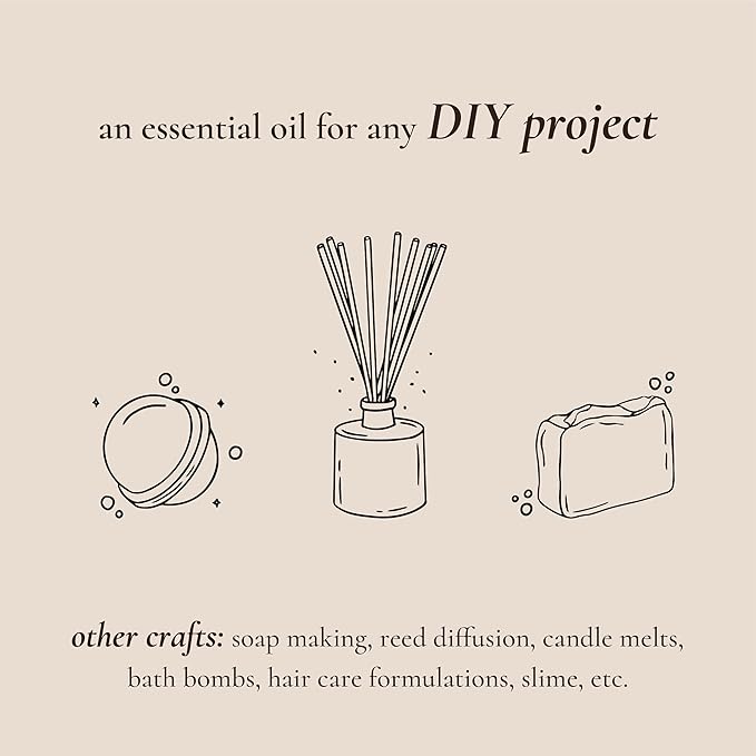 - OIL USES: Designed for but not limited to candle scents for candle making (especially works well with soy wax candle making), diffuser oil scents, freshie scents, oils for laundry, soap making supplies, slime scents, oils for skin, perfume oil, bath and body formulations, bath bombs, and many more essential DIYs.