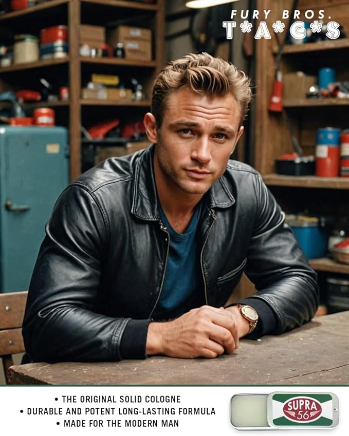 - STYLE AND DESIGN: Embrace the essence of vintage American style and design with Fury Bros.' TAGS Solid Colognes. Our fragrances pay homage to classic American motor oil artwork, each label uniquely crafted by Fury brother Jeremy Fury. Every TAGS tin is proudly produced in the USA and adorned with an original graphic inspired by the visual sensibilities of yesteryear.