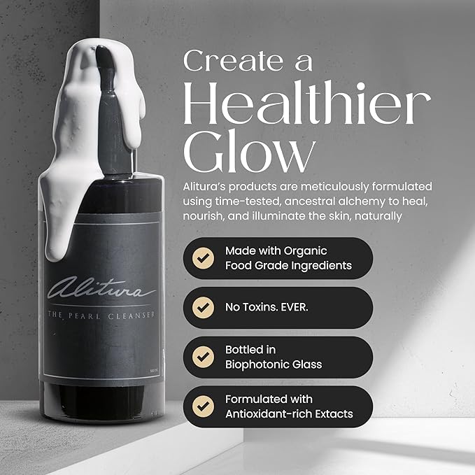 Alitura Pearl Facial Cleanser for Men & Women 100 ml – Anti-Aging Face Wash with Marine Collagen, Sea Kelp & Organic Botanicals – Hydrating Gentle Exfoliant for Clear, Smooth Skin – 3.4 oz Travel Size