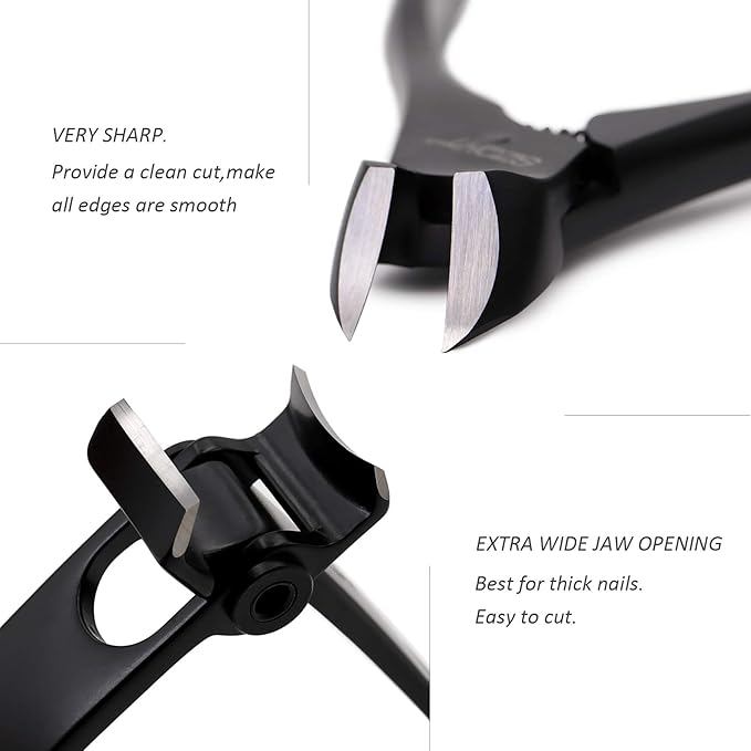 - EXTRA Wide JAW CURVED BLADES for Thick Nails-- Sharp, Curved, Wide jaw blades can open to 15mm. different from regular fingernail clippers,Perfect toenail nipper for your thick or ingrown toe nails due to tough,fungus, diabetes, paronychia, aging and other health concerns, be used as a manicure or pedicure tool.