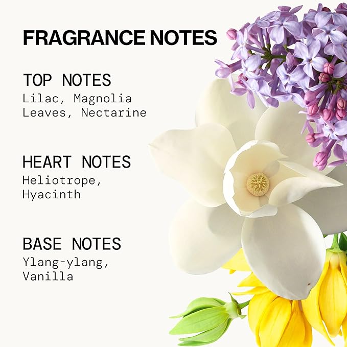 - This fresh scent conjures spring with a blend of lilac, magnolia leaves, heliotrope, ylang-ylang, hyacinth and subtle notes of nectarine