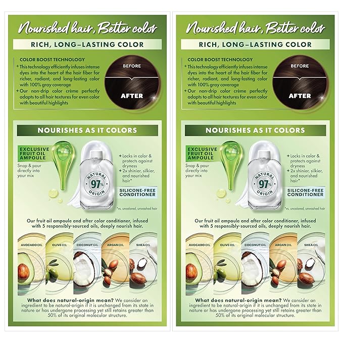 - Hair Dye Kit: The only hair color with a separate fruit oil ampoule that you snap & pour directly into the mix; Follow hair dye with our after color hair conditioner, infused with a blend of 5 fruit oils: avocado, olive, shea, argan & coconut oil