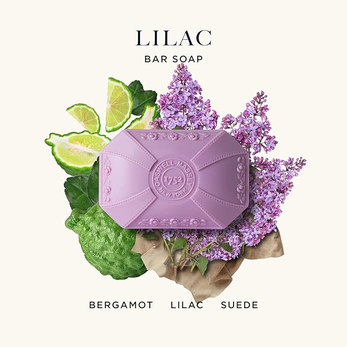 Caswell-Massey Natural Bar Soap for Women, Moisturizing Body Soap Bar for All Skin Types, Made with Essential Oils & Plant-Based Formula for Soft Skin, Lilac, 3.5 oz