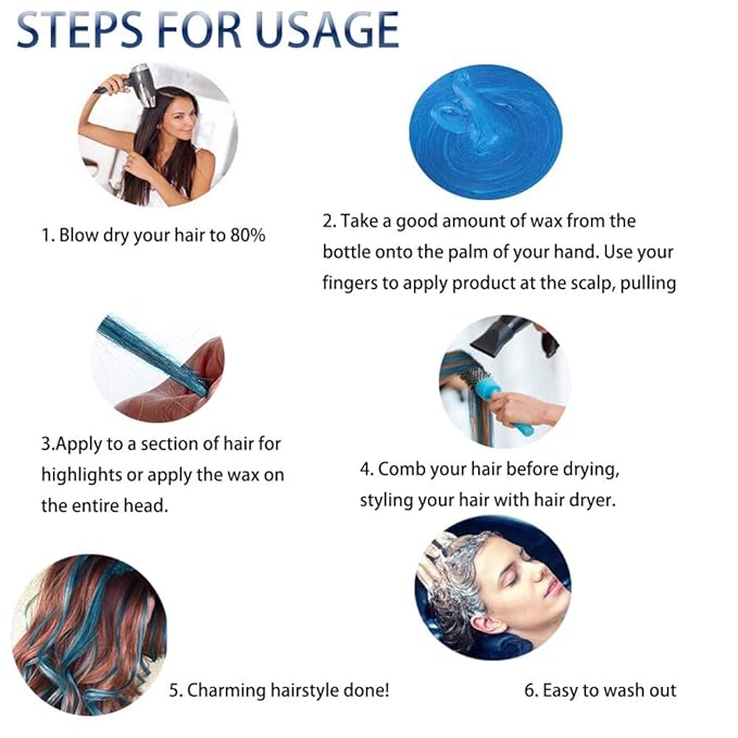 - Temporary Hair Wax: Change your hair with lots of variation of colors just in seconds. You can easily change your style and impression, and it is a good solution for people who likes dying hair with different colors
