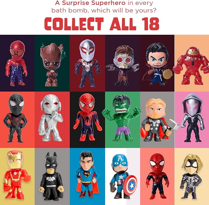 - [Collect all the Superheros] Delight in discovering super hero toys in every bomb! Fizzing excitement enchants kids as they dissolve and unveil endless joys.