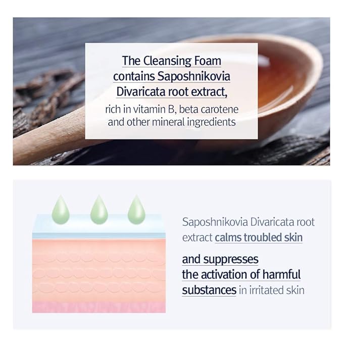 - Calming and Moisturizing: Saposhnikovia Divaricata root extract creates a moisture barrier which minimizes moisture loss after cleansing, calming sensitive skin and suppressing the activation of harmful substances