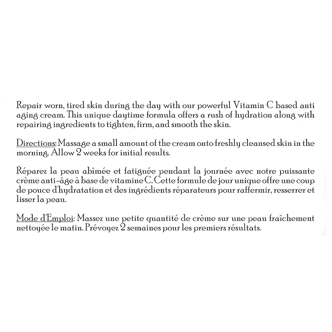 - What It Does: Our Vitamin C moisturizer face cream firms, brightens and tightens the skin using natural ingredients throughout the day.