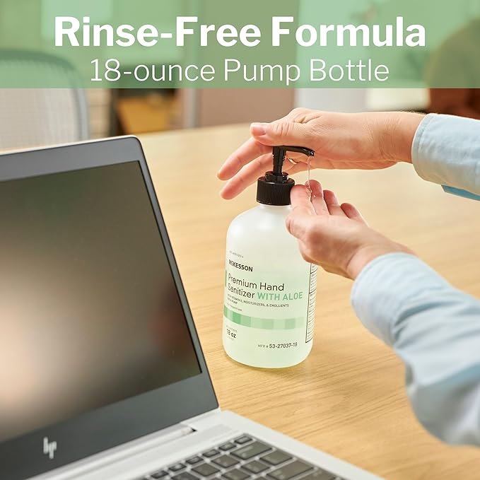 McKesson Hand Sanitizer with Aloe, 18 oz Pump Bottle [Pack of 2] – 70% Ethyl Alcohol, Spring Water Scent, No-Rinse Gel with Vitamin E and Moisturizers, Medical-Grade Sanitizer