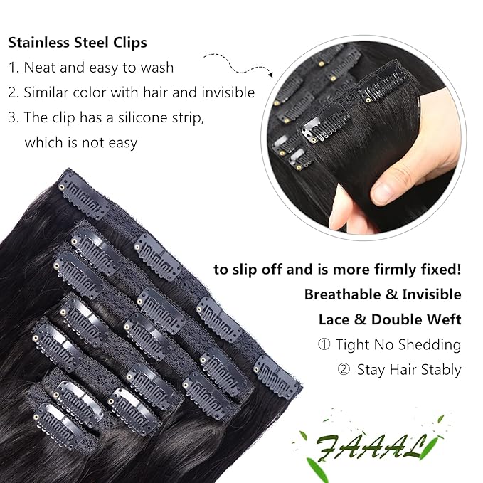 - Double Weft: Well Crafted Double Wefts, Keep Thickness From Top to End, no shedding, Tangle Free, Sewn with Quality Clips, Secure & Comfortable to Wear