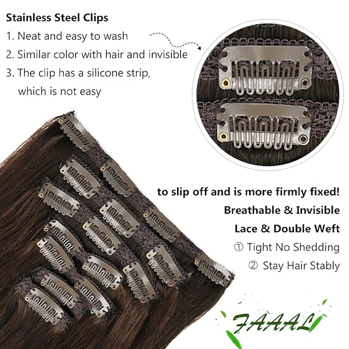 - Double Weft: Well Crafted Double Wefts, Keep Thickness From Top to End, no shedding, Tangle Free, Sewn with Quality Clips, Secure & Comfortable to Wear