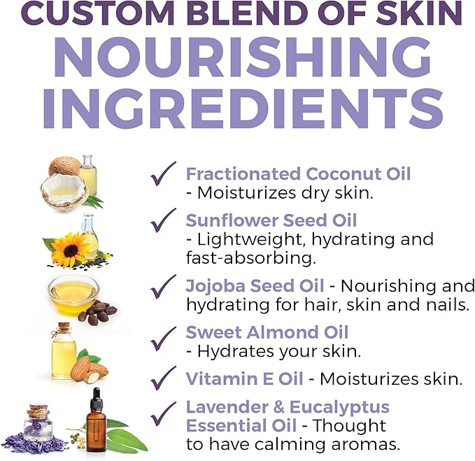 - NOT STICKY, NON-GREASY BODY MASSAGE OIL — This scented massage oil is not sticky or greasy, which means there’s no fuss and no mess - just a silky smooth application you’ll keep going back to making it the perfect hydrating body moisturizer.