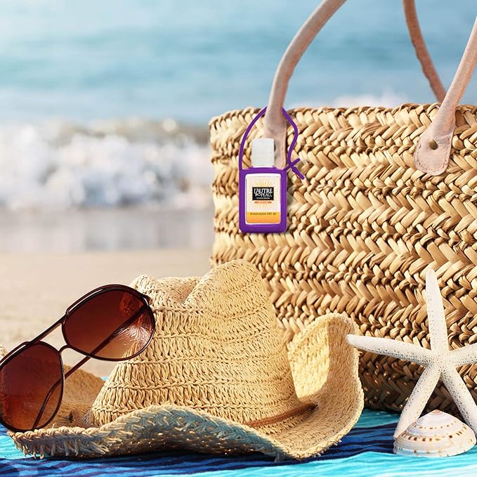 SPF 30 Sunscreen Multi-Pack by L'AUTRE PEAU | Travel Size Sunscreen for Men, Women & Kids | Non-Greasy, Water Resistant | Tropical Scent | TSA Approved | 4 Pack With Travel Strap