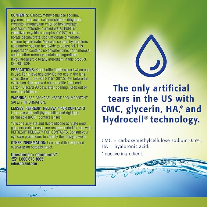 Refresh Relieva for Contacts Lubricant Eye Drops For Dry Eyes, 0.27 Fl Oz Sterile