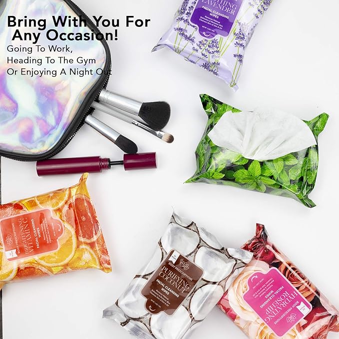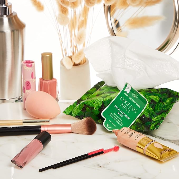 Body Prescriptions Makeup Remover Wipes - Bulk Pack, Gentle Cleansing Wipes for Easy Makeup Removal, Mint, Rosehip, Vitamin C, Lavender & Coconut