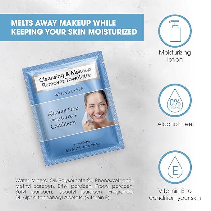 - NOURISHING FORMULA - Our facial cleansing wipes are non-drying, and are good for your skin as it contains vitamin E and is free of alcohol. Keep your face, lips, and eyes conditioned with these make up remover wipes for face.