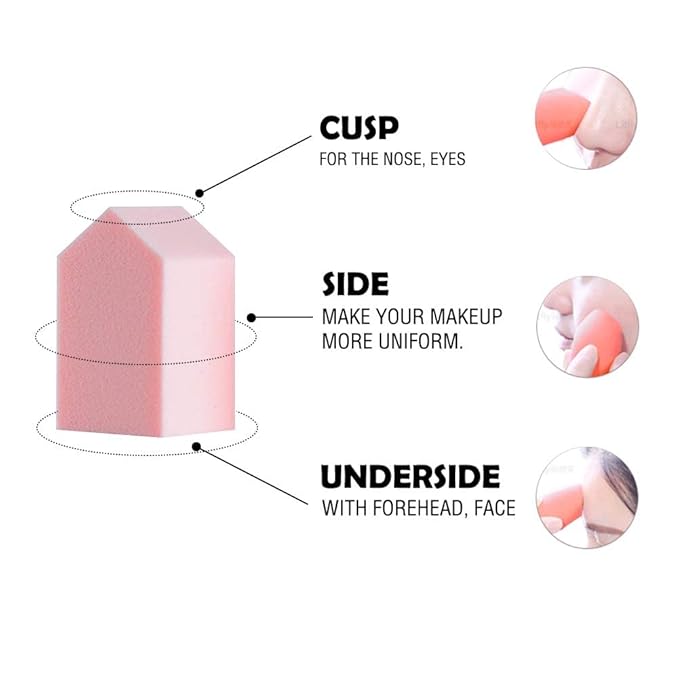 - Perfect for Applications and Touch-ups Around Eyes and Nose. The ARC Surface of Sponge is Great for Blending on Cheeks, While the Precision of the Sponge's Tip Makes Covering Imperfections Easy. Use the Flat Edge Around the Nose and Eyes for Contouring, to Get an Enhanced, Beautiful and Smooth Complexion.