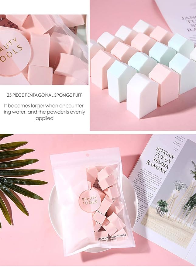 25 PCS Makeup Blenders Sponges Set, Use for Dry and Wet, Perfect for Full Face Curve Blending, Cream, Liquid, Powder Foundation Cosmetics, Latex Free & Soft & Flexible, Pentagon