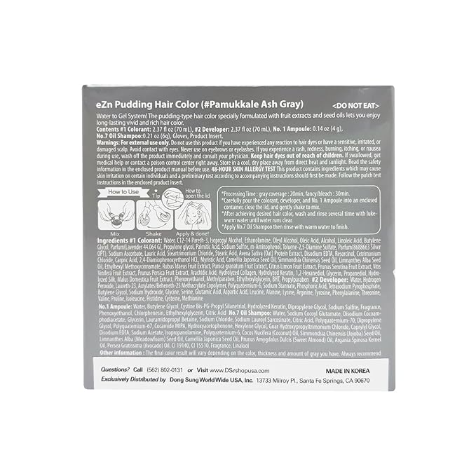 eZn Pudding Hair Dye, Ammonia-Free, Semi-Permanent DIY Korean Hair Dye Color with Keratin, Odorless Gentle for Sensitive Skin No Skin Irritation (Ash Gray)