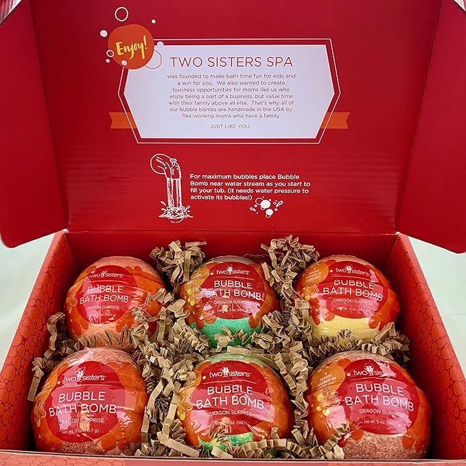 Dragon Bath Bombs for Kids with Surprise Toys Inside (6 Pack) - Large Bubble Bomb, Gentle and Safe, USA Made, Birthday Gift for Boys and Girls by Two Sisters