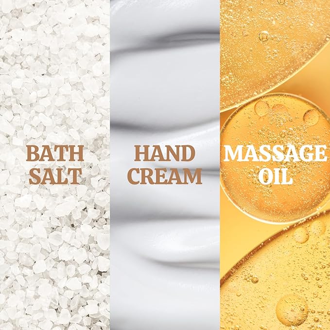 - 5PCS TRAVEL SIZE TOILETRIES: Bath and body gift set works by Massage Oil-30ml, Scented Candle-50g, Bath Salt-190g, Hand cream-30ml, Soap-100g; Great travel size massage gift set, toiletries gift set, also a best thank you gift, self care gift