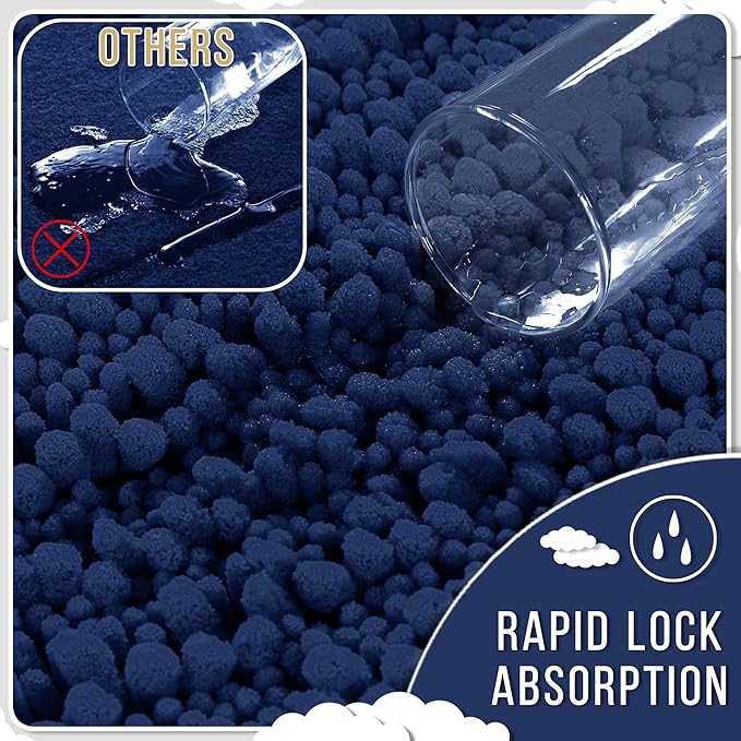 Yimobra Large Bathroom Rugs Non Slip Washable 36x24 Inch - Ultra Soft Absorbent Chenille Bath Mat, Quick Dry Shaggy Floor Carpet for Tub Shower, Navy Blue Home Decor Accessories