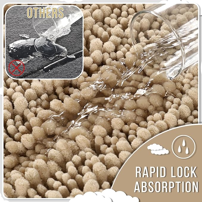 Yimobra Large Bathroom Rugs Non Slip Washable 36x24 Inch - Ultra Soft Absorbent Chenille Bath Mat, Quick Dry Shaggy Floor Carpet for Tub Shower, Camel Home Decor Accessories