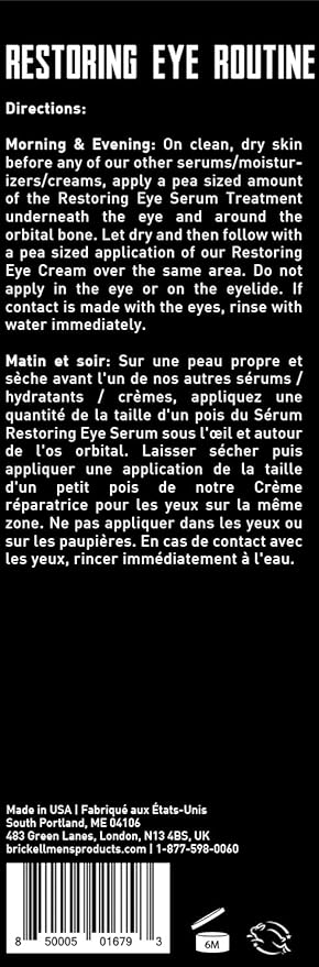 Brickell Men's Restoring Eye Routine for Men, Eye Cream and Serum for Men, Natural and Organic, Unscented, Men's Skin Care Gift Set