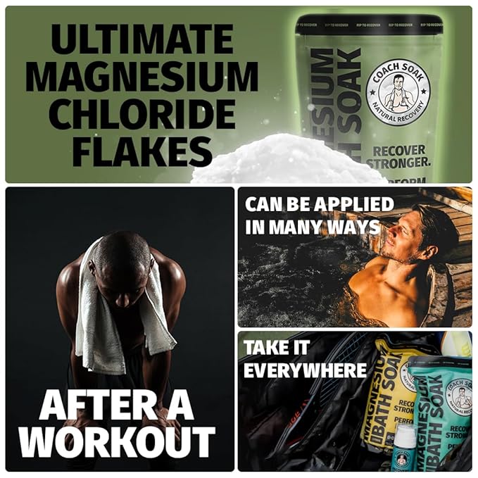 - Recovery Bath: Discover muscle and joint support with our bath soak, manufactured in the USA with high-quality selected ingredients from trusted global sources and infused with magnesium flakes, mineral-rich Dead Sea salts, and Vitamin C crystals. Perfect for both men and women, indulge in a 20-minute soak for a refreshing bath