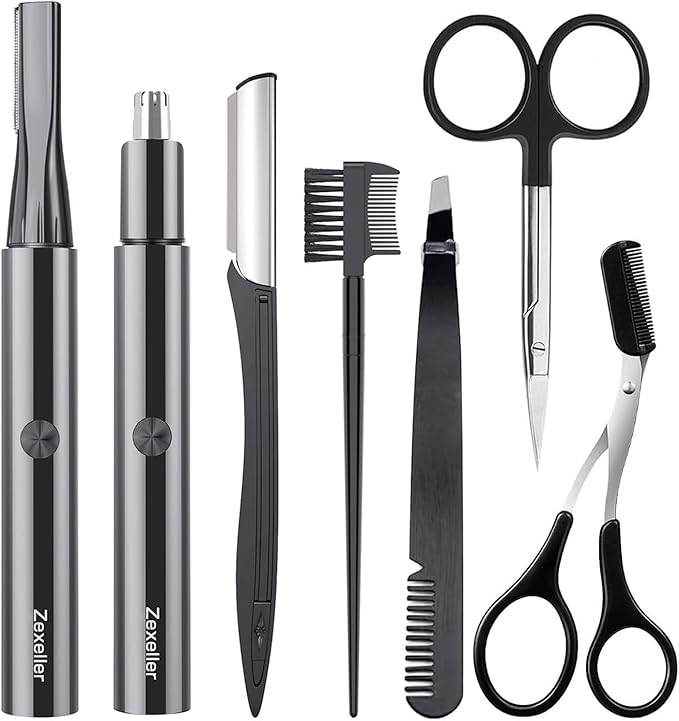 9-in-1 Precision Trimmer Kit: Eyebrow Trimmer,Electric Eyebrow Razor, Nose Trimmer, Grooming Scissors, Tweezers & Brush | All-in-One Grooming Tool