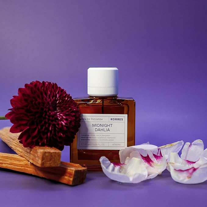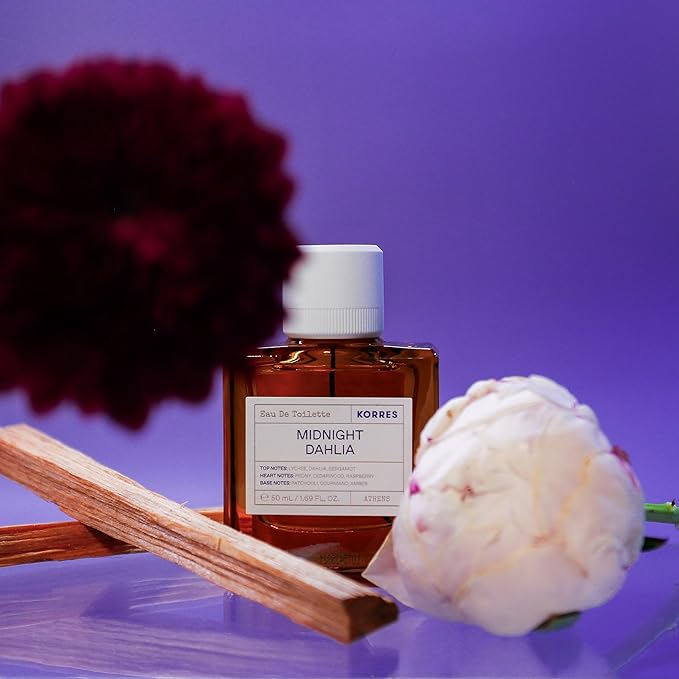 KORRES Eau de Toilette, Midnight Dahlia Perfume for Women, Floral Fruity Amber Fragrance with Lychee, Peony, Raspberry, Cedarwood & Musk, Clean Greek Scent, 1.69 Fl Oz