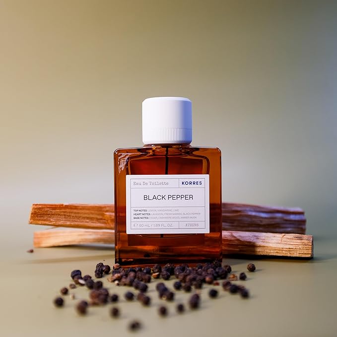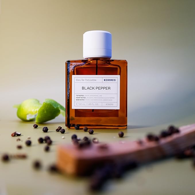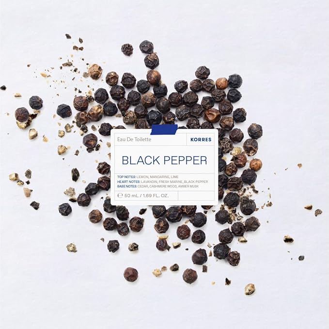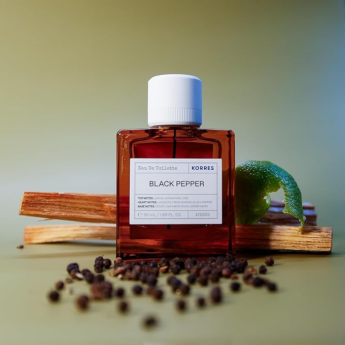 KORRES Eau De Toilette, Black Pepper Fragrance Spray With Lemon, Mandarine & Lime Notes, Lavandin Heart, Cedarwood, Cashmere & Amber Musk Base, Woody Spicy Scent For Women And Men, 1.69 Fl Oz