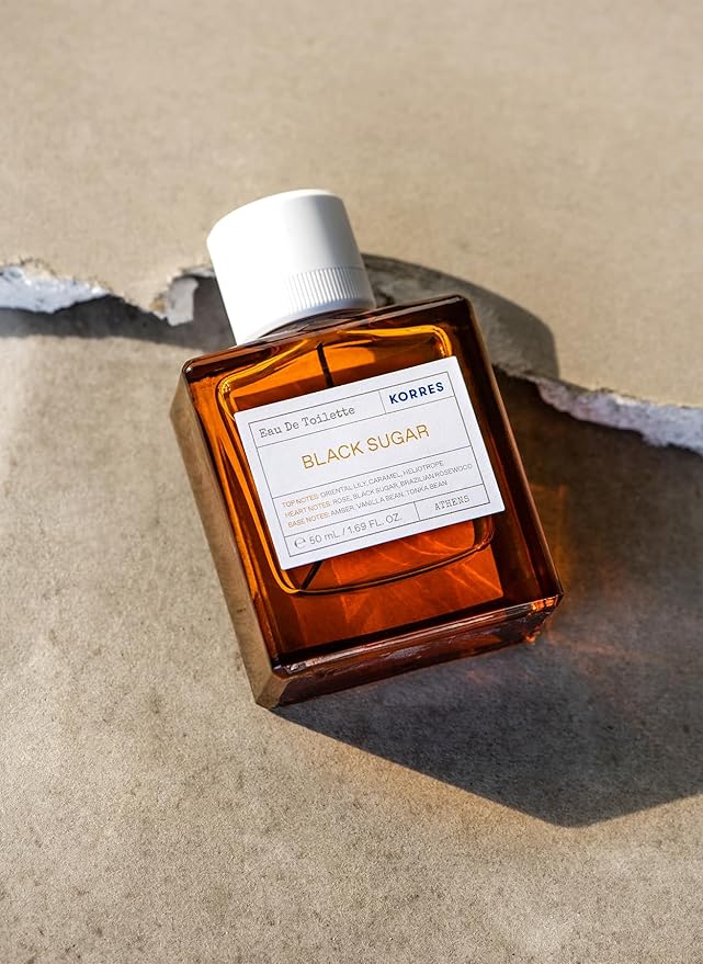 KORRES Eau De Toilette, Black Sugar Fragrance Spray, Unisex Perfume Featuring Oriental Lily, Caramel, Heliotrope, Rose, Brazilian Rosewood, Amber, Vanilla, Tonka, Ambery Floral Scent, 1.69 Fl Oz