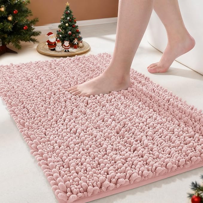 Yimobra Bathroom Rugs Non Slip Washable - Ultra Soft Absorbent Chenille Bath Mat, Quick Dry Shaggy Floor Carpet for Tub Shower, Light Pink Home Decor Accessories, 24x17 Inch