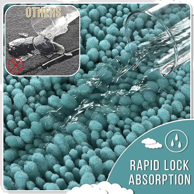 Yimobra Bathroom Rugs Non Slip Washable 32x20 Inch - Ultra Soft Absorbent Chenille Bath Mat, Quick Dry Shaggy Floor Carpet for Tub Shower, Teal Blue Home Decor Accessories